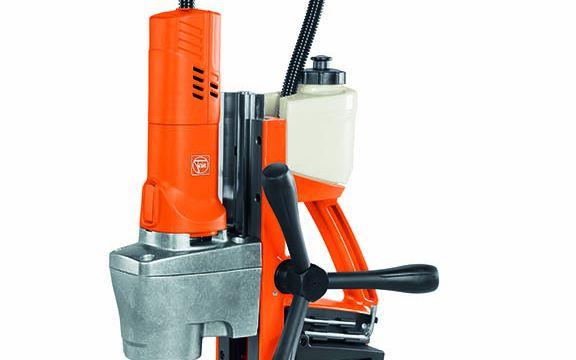 Für preissensible Endkunden, die dennoch viel Wert auf Qualität und Lebensdauer legen, bietet FEIN die günstige 1-Gang-Eco-Magnet-Kernbohrmaschine KBE 30. Sie ist klein, mit 10,5 Kilogramm verhältnismäßig leicht und erreicht Kernbohrdurchmesser von 30 Millimeter. Die Motorkabelführung ist in die Maschine integriert; dadurch wird verhindert, dass sich das Kabel am Werkstück einfädelt und beschädigt wird. Durch einen adaptierbaren Kühlmitteltank mit Innenkühlschmierung erreicht der Anwender eine bessere Schneid- und Zerspanleistung. Das Vorschubhandrad der Maschine kann der Anwender werkzeuglos entweder auf der rechten oder linken Seite befestigen – je nachdem, von welcher Seite aus er arbeiten möchte.