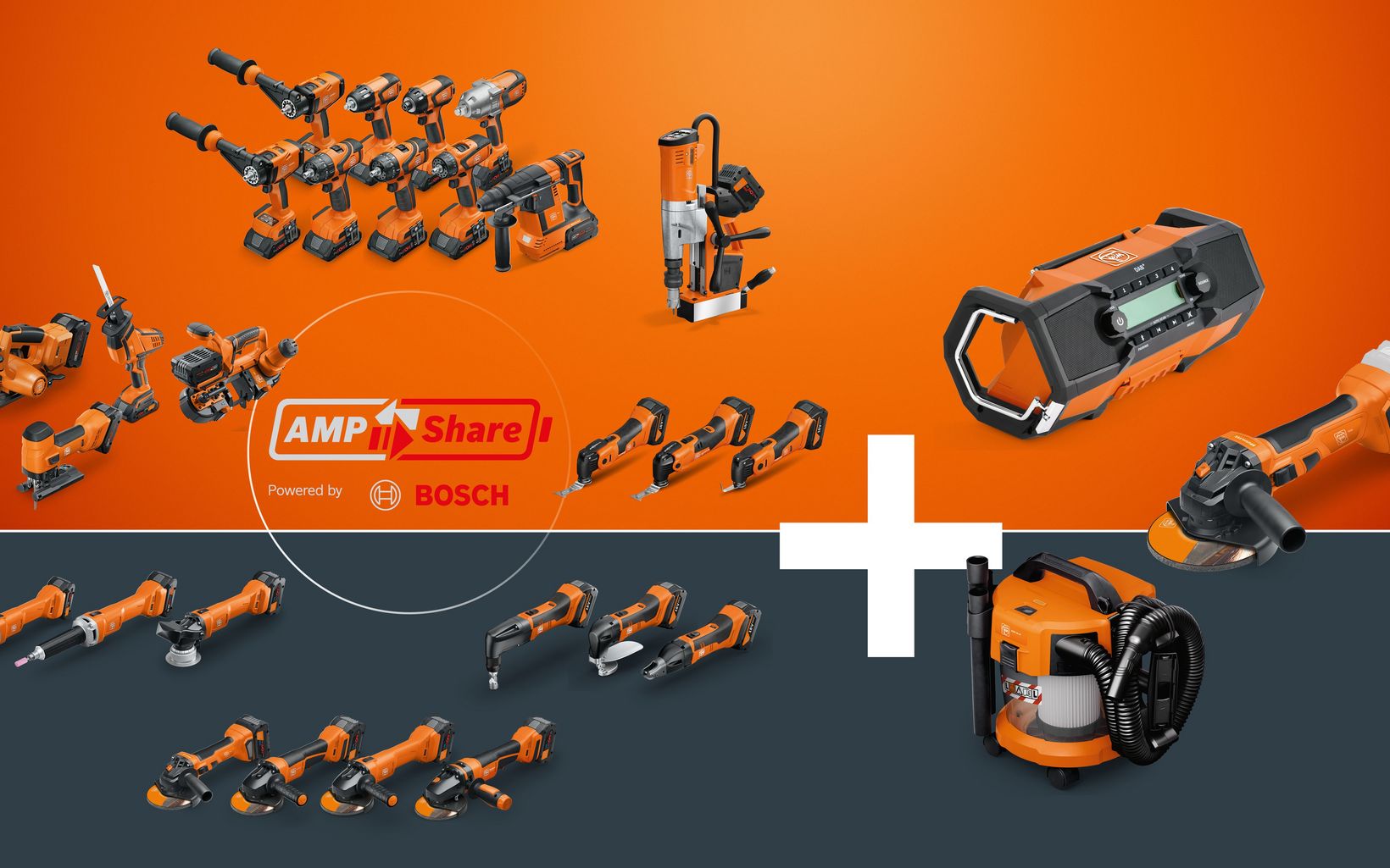 Eine Schnittstelle, viele Möglichkeiten: Alle FEIN Maschinen können jetzt sowohl mit AMPShare, als auch mit BOSCH Professional 18V Akkus ab 2008 betrieben werden. Durch moderne Zelltechnologie und intelligentes Akku-Management erzielen die Akkus 87% mehr Leistung als konventionelle Akkus und haben zudem durch die überlegene Wärmeableitung eine 135% längere Lebensdauer als Standard-Akkus. Das bedeutet: kürzere Ladezeiten, mehr Leistung und weniger unterschiedliche Akkus und Ladegeräte – für einen besseren Überblick und mehr Ordnung am Einsatzort.
