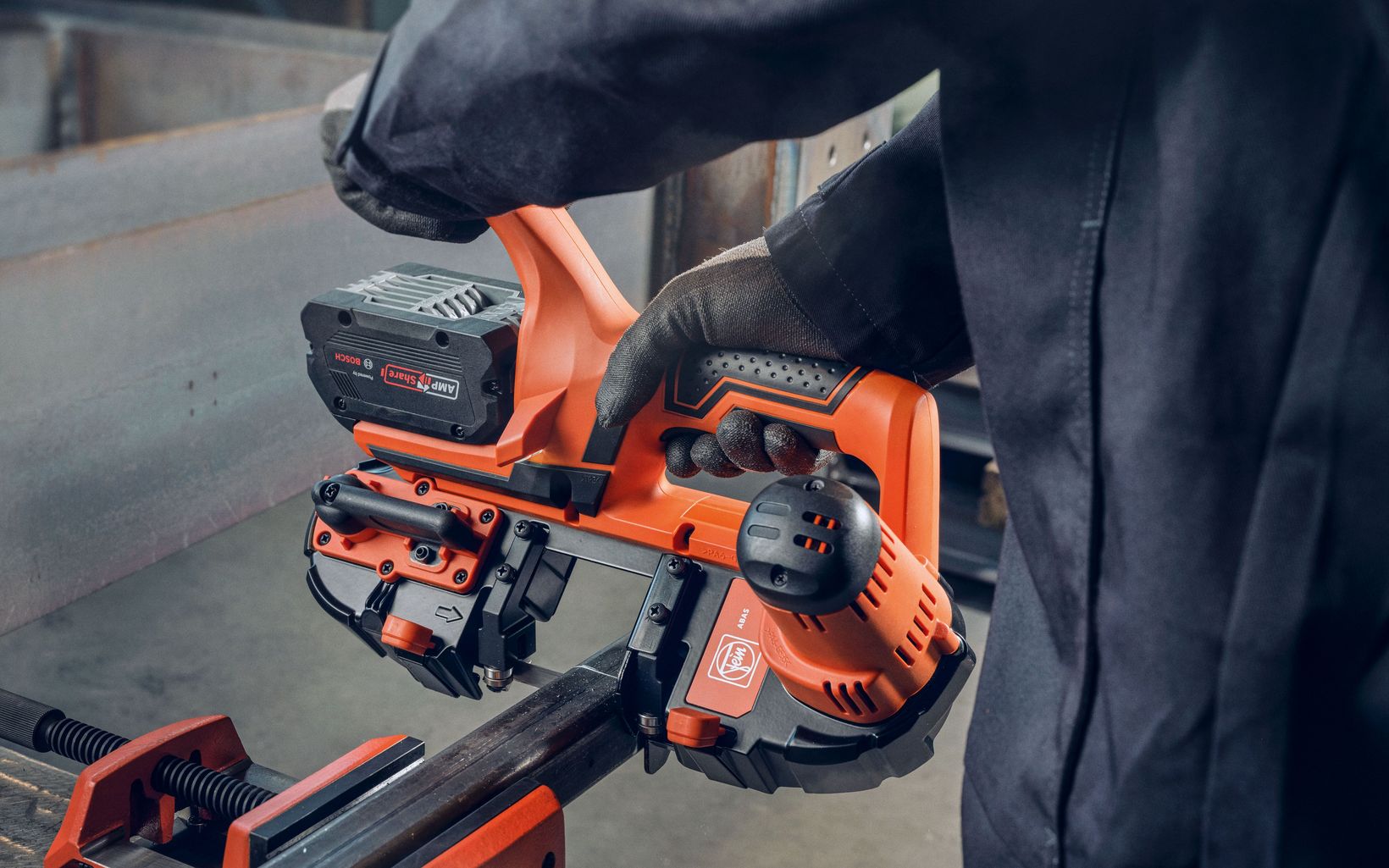 Con la sierra de cinta ABAS 18-63 AS tampoco supone ningún problema trabajar con poco espacio de movimiento. El cambio de la hoja de sierra sin herramienta permite trabajar cualquier metal. La marcha de la hoja de sierra con pocas vibraciones y la iluminación LED de la zona de trabajo permiten obtener unos resultados de serrado precisos. En un solo corte se pueden hacer cortes de separación y de inglete. Gracias al tamaño compacto y al cómodo manejo bimanual, el diseño ergonómico hace que el trabajo resulte muy agradable.