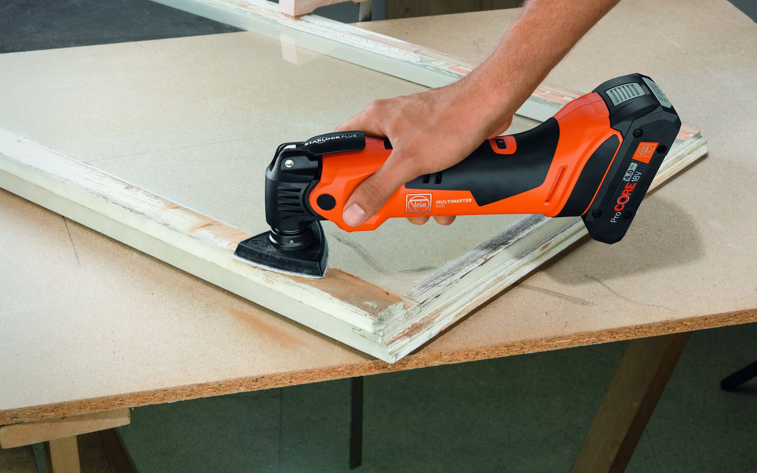 La MULTIMASTER ha sido un gran éxito en todo el mundo desde que FEIN la inventó hace más de 50 años. En la actualidad, FEIN cuenta con tres modelos diferentes de esta herramienta, cada una de ellas disponible tanto en versión con cable como de batería: las MULTIMASTER 300, 500 y 700. Los usuarios valoran la multiherramienta como un solucionador universal de problemas para aplicaciones de corte, desbaste, lijado, pulido, raspado o limpieza. Cuando se trata de aplicaciones especiales, usuarios profesionales como carpinteros, pintores o montadores de interiores confían en MULTIMASTER, al igual que los instaladores o trabajadores del sector del metal.