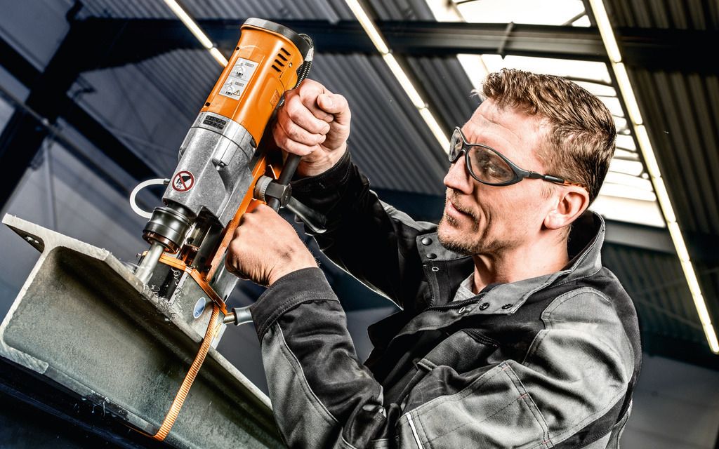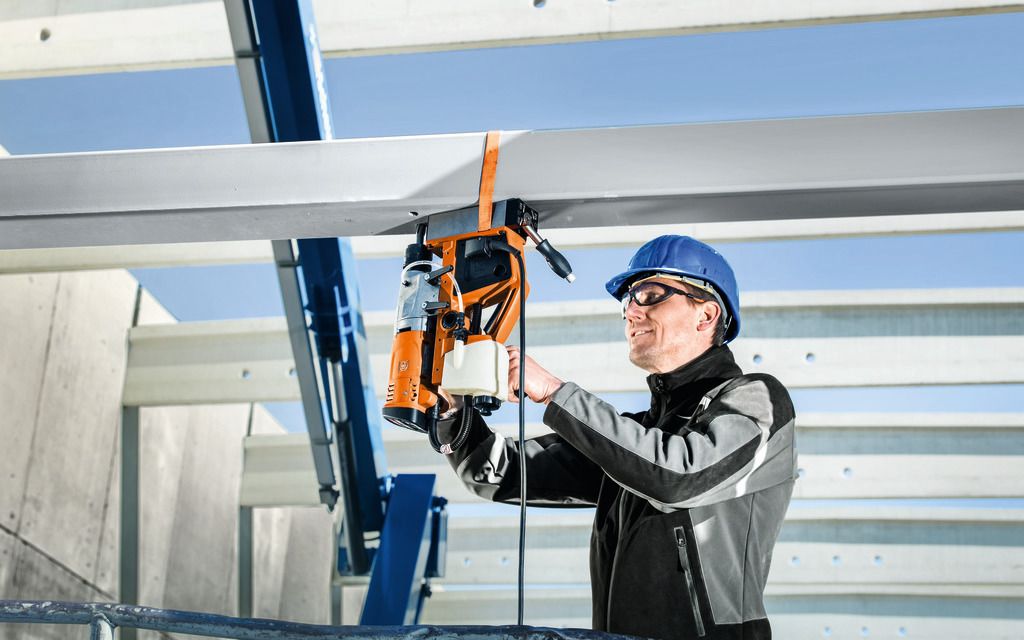 “In addition to flexible use, developers have made huge advances in tool safety,” explains product manager Christian Kreb: “Users, who have to continuously drill holes vertically or at height – be it in steel girders or overhead on bridges – require especially good occupational safety.” If someone disconnects the power source by mistake, the tool and its electric magnet might fall. This explains why FEIN has equipped the new core drills with a permanent magnet. “The magnetic holding force is guaranteed regardless of the power supply – primarily for user safety but also of course to protect the tool,” says Christian Kreb.