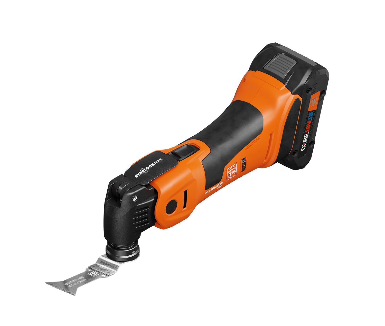 Grande diversité d'applications grâce à plus de 180 modèles d'accessoires FEIN dans les catégories de puissance Starlock, StarlockPlus et StarlockMax, et vitesse de travail accrue grâce à une transmission de puissance maximale sans perte.